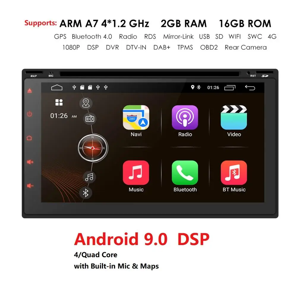 SPECIAL OFFERS 2GB+16GB Android 9.0 Auto Radio 4 QuadCore 7Inch 2DIN Universal Car DVD player GPS Stereo Audio Head unit Support DAB DVR OBD BT Online