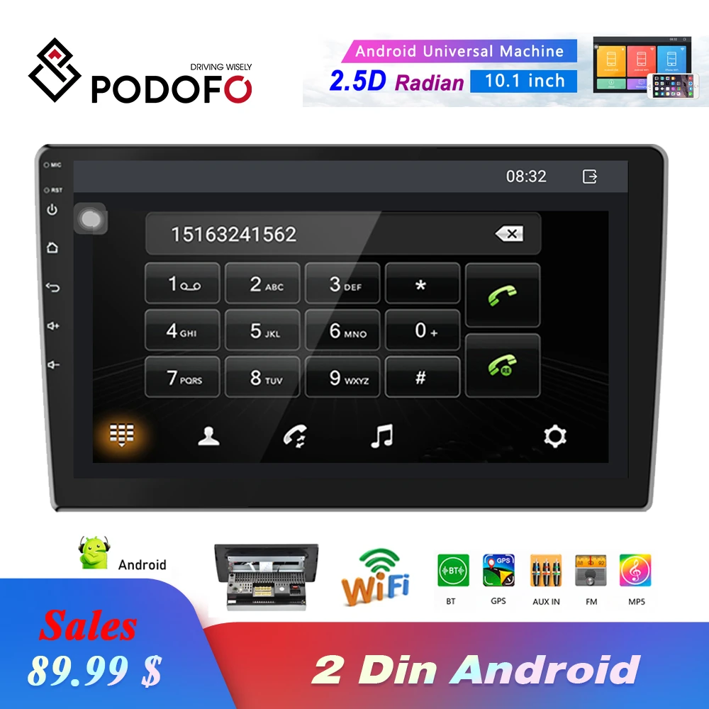 HOT OFFERS Podofo 2 Din Car Radio 10.1 Inch HD MP5 Multimedia Player Android 8.1 Stereo Gps Navigation Wifi Bluetooth FM Receiver Inexpensively Price HOT SPECIAL PRICE Limited