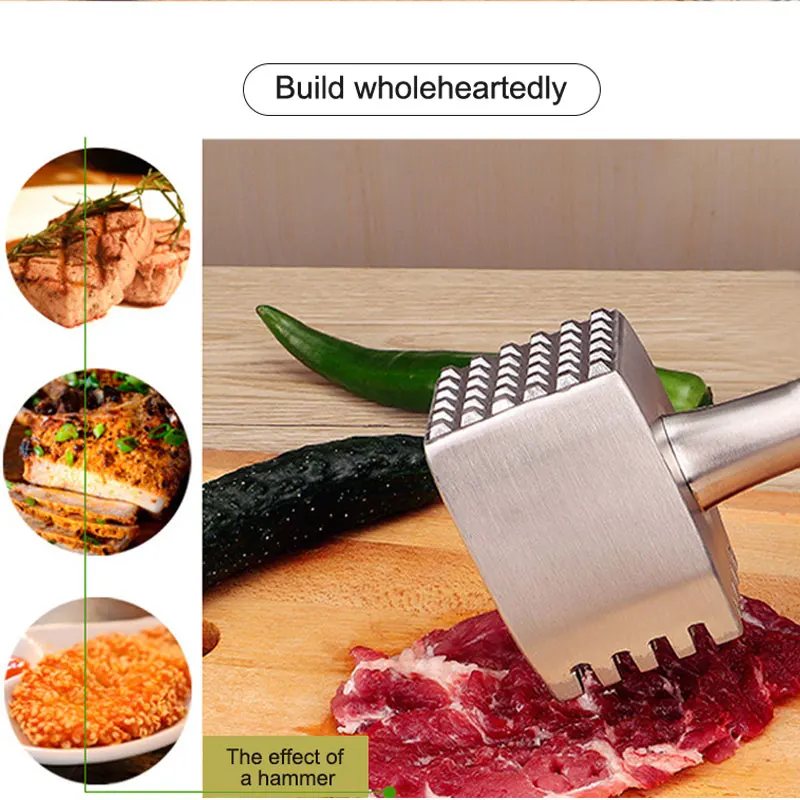 SPECIAL OFFERS Double Sided Meat Tenderizer Tool Stainless Steel Meat Hammer Pounders Cuber Machine Mallet Needle Knock hammer Kitchen Tools one of the best
