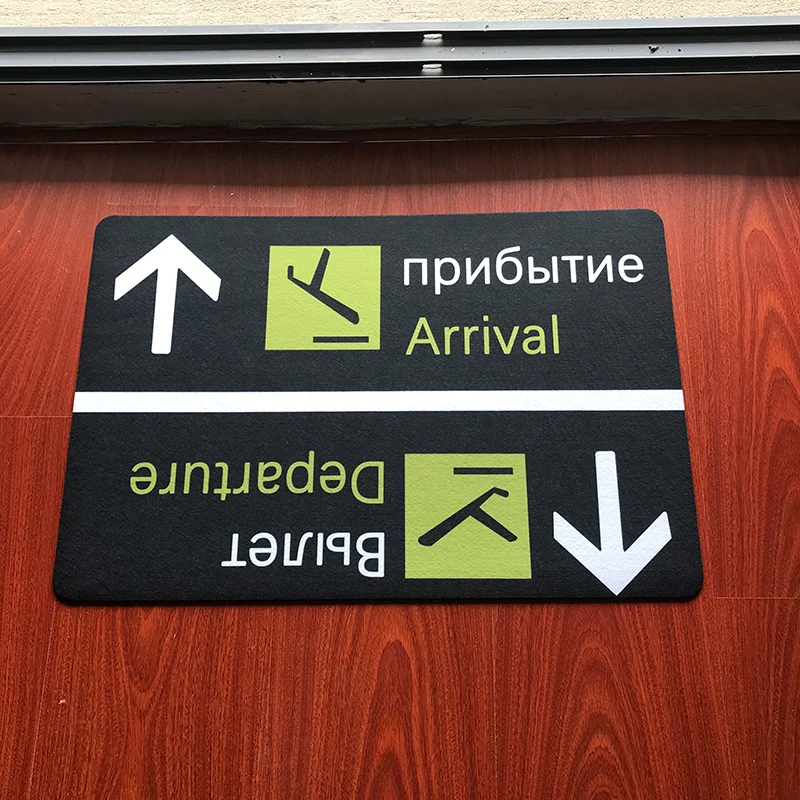 SPECIAL OFFERS Russian Funny Arrival Departure Welcome Mat Entrance Novelty Doormats Floor Airport Sign Non Slip Rubber Indoor Mats Rug Carpet one of the best