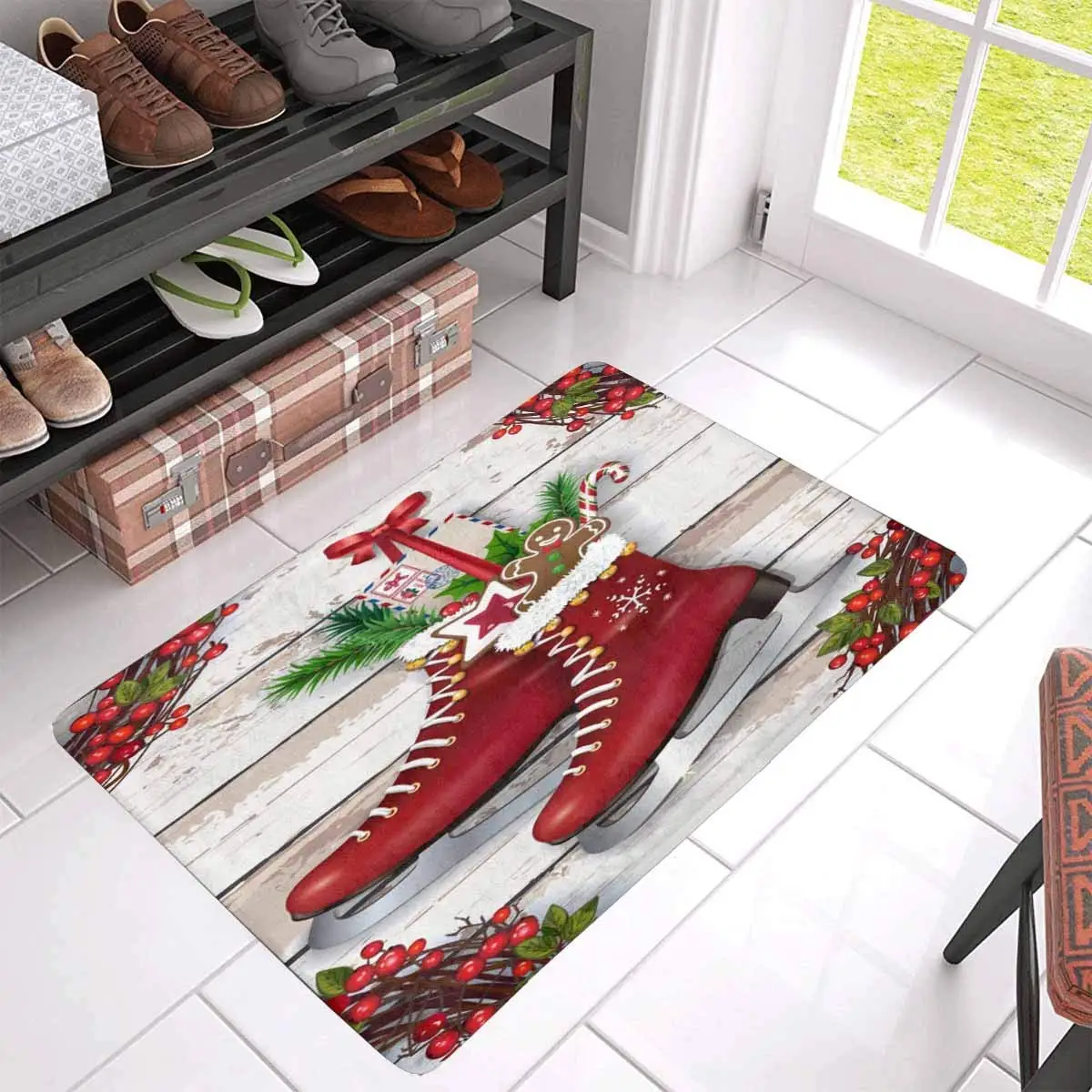 SPECIAL OFFERS Christmas with Winter Vintage Skates Front Door Mat Welcome Doormat for Home, Indoor, Entrance, Kitchen, Patio Online