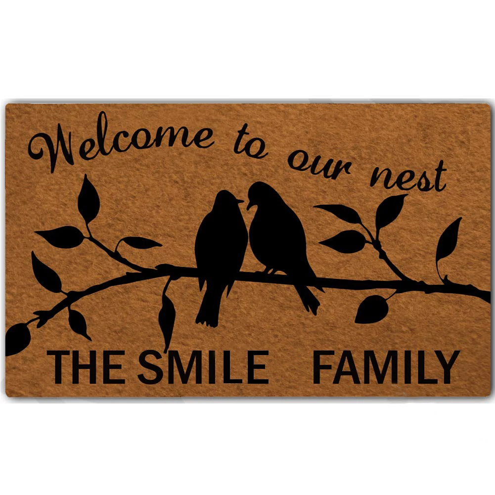 DISCOUNT definitely the Custom Rubber Door Mat Welcome to Our Nest The Smile Family Door Mat Indoor Outdoor Decorative Doormat RECOMMENDED TODAY